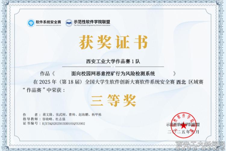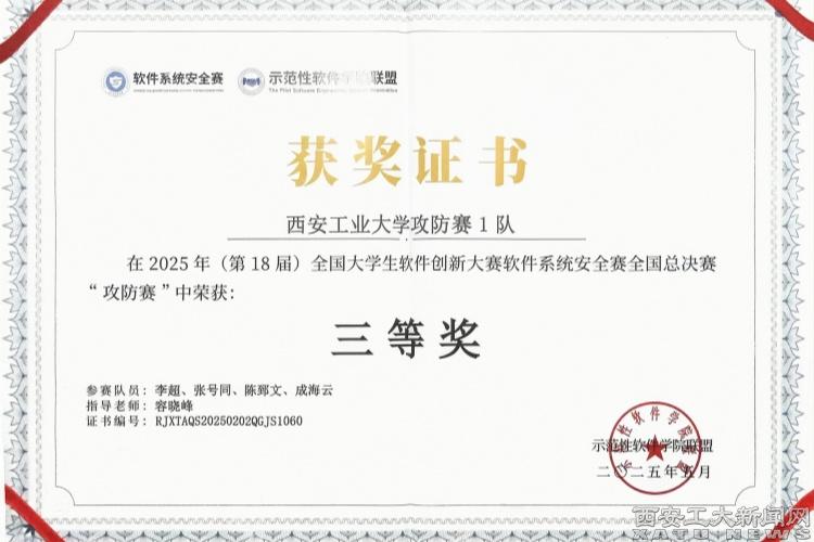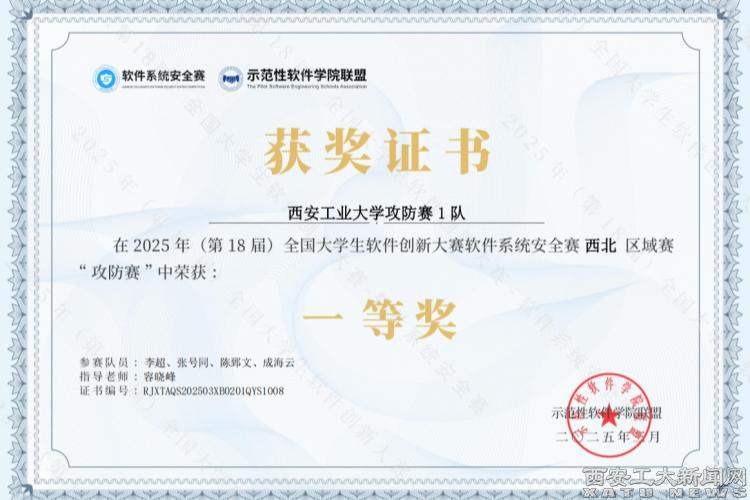 本年度赛事,吸引了全国406所高校1780支队伍报名参赛。在西北区域赛中,我校学子李超、张号同、陈郅文、成海云组成的乐动(中国)攻防赛1队取得西北区域赛“攻防赛”一等奖;宋佳乐、杜伊恒、傅天一、李佳阳组成的乐动(中国)攻防赛3队取得西北区域赛“攻防赛”二等奖;“蒋文隆、张武刚、曹帅、赵海鹏、杨甲栋”组成的乐动(中国)作品赛1队取得西北区域赛“作品赛”三等奖。