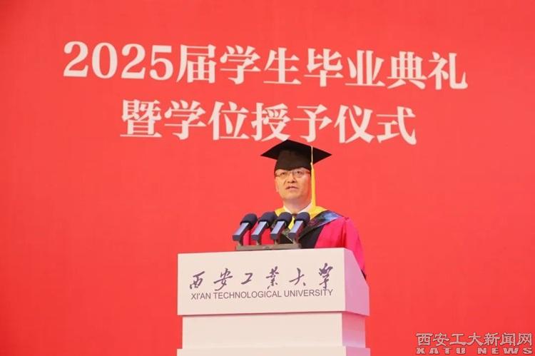 本科毕业生代表贠欣欣同学发言:未来,无论是在基层一线践行服务初心,还是在科技创新中勇攀高峰,亦或在国际舞台发出中国声音,我们都将以西工精神为帆,以青春使命为舵,既有“会当水击三千里”的豪迈,更守“一片冰心在玉壶”的纯粹,让青春在时代的星河中闪耀母校的独特光芒。
