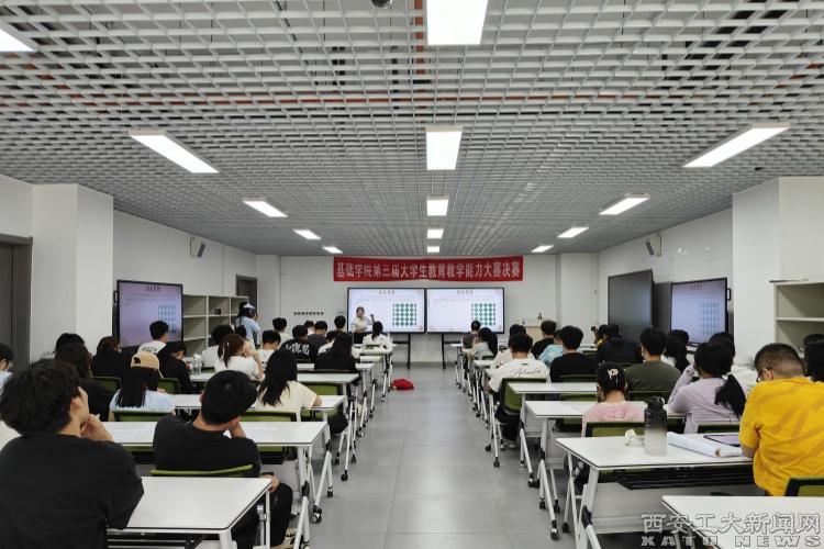 (本网讯)为深化教育教学改革,全方位提升大学生的教育教学实践能力,夯实就业竞争力,基础学院精心筹备并成功举办了第三届大学生教育教学能力大赛。赛事吸引了200余名学子踊跃参与,经过初赛、复赛的层层选拔,10位表现优异的选手脱颖而出,晋级决赛舞台。5月14日下午,决赛在大学生活动中心215室拉开帷幕,西安学而思的张雪欧、张文亮、禹小琴三位资深教师受邀担任专业评委,为比赛保驾护航。