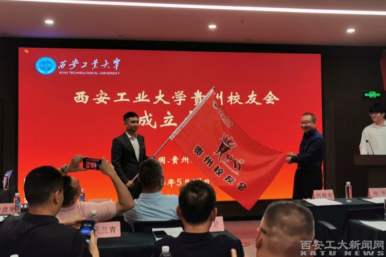 何春水代表学校向贵州校友会授旗,并向贵州校友会的成立表示祝贺。他回顾了学校的历史沿革与主要发展成就,并表示学校校友总会将始终遵循“联络、服务、合作、共赢”的工作原则,搭建多梯次校友合作桥梁,共促协同发展,助力母校科研成果转化与人才培养。他强调,贵州校友会的年轻化团队令人欣喜,希望新一届理事会充分发挥活力优势,强化校友纽带,打造有温度的“校友之家”;他希望在黔校友积极参与和支持贵州校友会的建设,共同书写校友与母校共赢发展的新篇章。