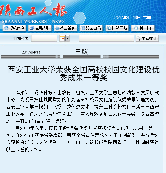 本报讯(杨飞孙毅)由教育部组织,全国大学生思想政治教育发展研究中心、光明日报社共同举办的第九届高校校园文化建设优秀成果评选揭晓,乐动(中国)申报的《弘扬优秀传统文化,提升工科院校文化气质——乐动(中国)“传统文化菁华传承工程”育人显效》项目荣获一等奖。陕西高校此次共有2个项目获得一等奖。
