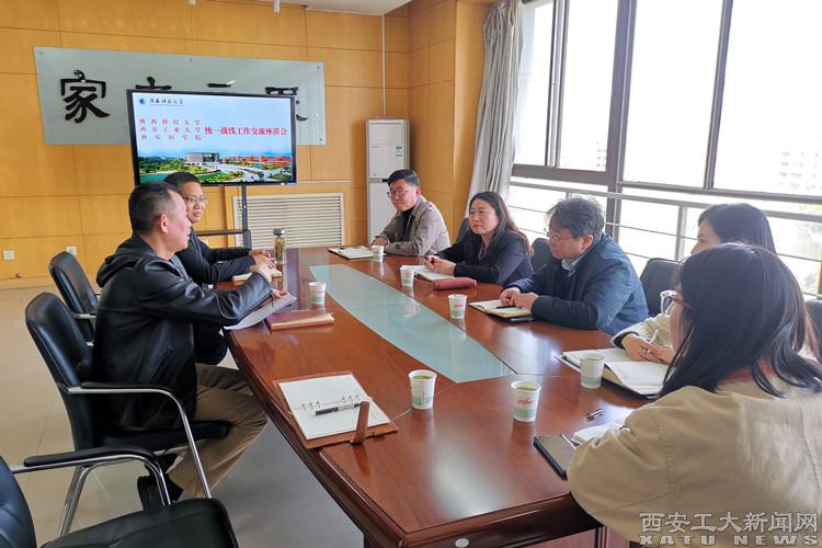 (本网讯)4月6日,未央三校统一战线工作专题调研暨统战工作交流座谈会在陕西科技大学召开,校党委委员、党委统战部部长雷晓青,西安医学院党委委员、党委统战部部长吴戈出席。会议由陕西科技大学党委委员、党委统战部部长、工会主席陈援主持。