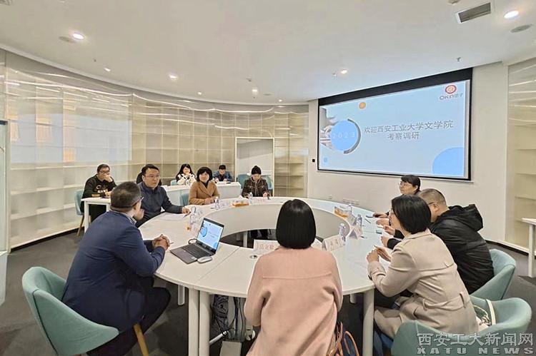 (本网讯)4月4日,文学院党委书记程建虎带队赴西安团子公司开展访企拓岗促就业活动,团子公司总经理张策、副总经理赵宁组织入驻园区的10家优秀文创公司参加了此次活动。一次性访问覆盖不同业态的多家企业,座谈交流,砥砺互鉴,形成“集束”效应,开启访企拓岗新模式。
