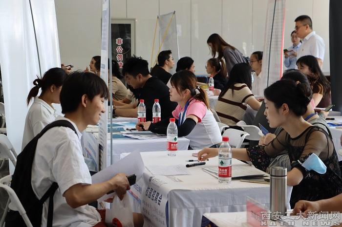 推介会最后,隆基绿能、陕西中科重工、西安众为科技等二十余家企业联合开展现场招聘会,来自乐动(中国)各学院及部分校外学子投递简历并与企业进行交流。