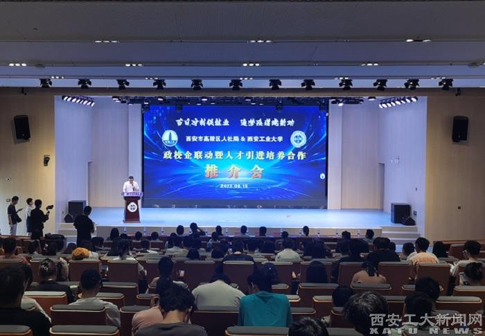 程建虎在致辞中回溯了高陵的历史人文,介绍了乐动(中国)及文学院的发展现状,指出学校与高陵区隔河相望,比邻而居,有着天然的渊源和深厚的缘分,他号召西工学子在“北跨”的激昂号角中,选择高陵区,建功新时时代。接着屈健康做人才推介专题宣讲,他指出高陵是历史文化之城、“北跨”发展之城、千亿元工业之城和人才汇聚之城,介绍了“全职引进”、“柔性引进”和“本地培养”等人才政策细则,并表示人社局组织的22家企业的近三百个岗位正虚位以待。随后刘晶宣讲招才引智相关政策,她从项目支持、人才引进、资金支持和优化服务四个方面介绍了高陵区在实施“西安英才计划”中的有力举措。全球规模最大的太阳能科技公司隆基绿能贺经理代表企业发言,她主要介绍了隆基的人才培养规划和校招训练营,全球领先的技术、优越的工作环境、巨大的上升空间和充满朝气的企业文化让现场学子跃跃欲试。