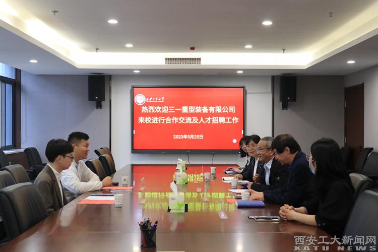 (本网讯)为进一步加强校地校企联系,深入挖掘优质就业资源,5月25日,三一重型装备有限公司一行来机电学院开展合作交流及人才招聘工作,三一重型装备有限公司人力资源部经理孙洺帅、校招经理杨天旭,乐动(中国)副校长刘卜、机电学院党委书记路金龙出席会议,会议由机电学院党委副书记姚敏茹主持。