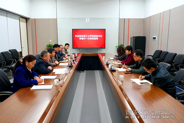 (本网讯)11月21日上午,西安理工大学党委副书记李建竹一行四人来我校开展“不忘初心、牢记使命”主题教育专题考察。校党委副书记王军周出席,党委办公室校长办公室、党委组织部、党委宣传部、党委统战部等部门负责同志参会。座谈会由王军周主持。